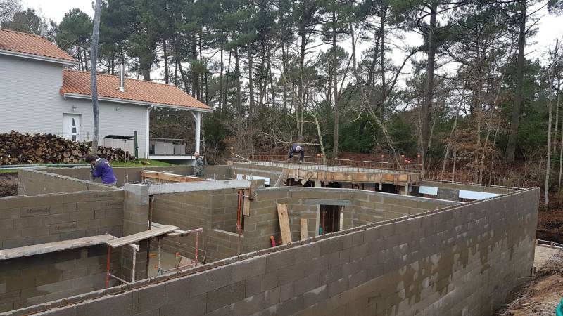 réalisation de construction de maison individuelle à Cazaux par RB Constructions.RB Constructions a assuré la maçonnerie générale de ce chantier à