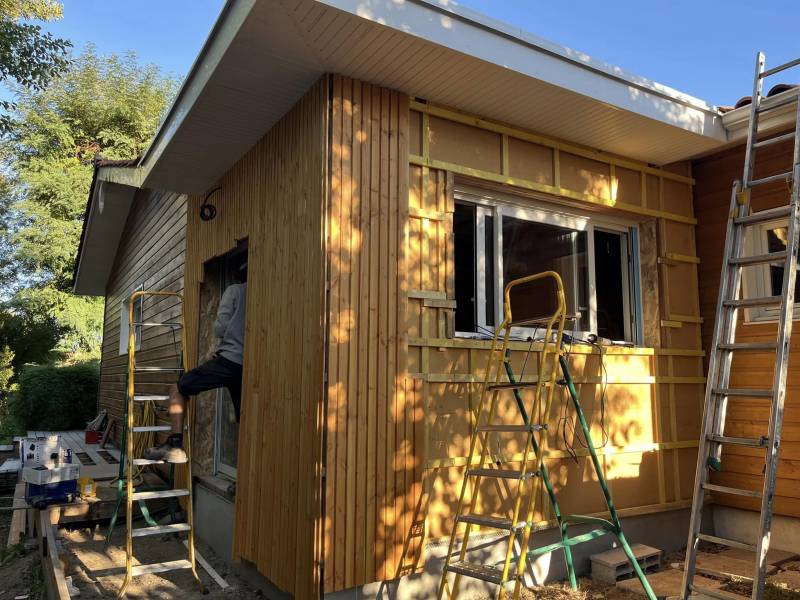 nombreuses poses de bardage bois, que ce soit dans le cadre d'une rénovation, d'une construction, ou encore d'une surélévation de maison.